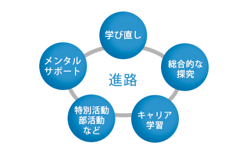| 3学年 | 進路面談 | 実践的な面接練習や志望動機書の書き方などの進路実現のためのスキルを身につけます | 進路決定 |