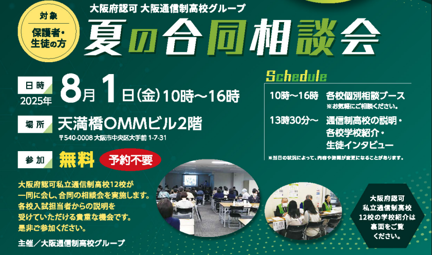 【大阪通信制高校グループ】(入学検討者対象)夏の合同相談会